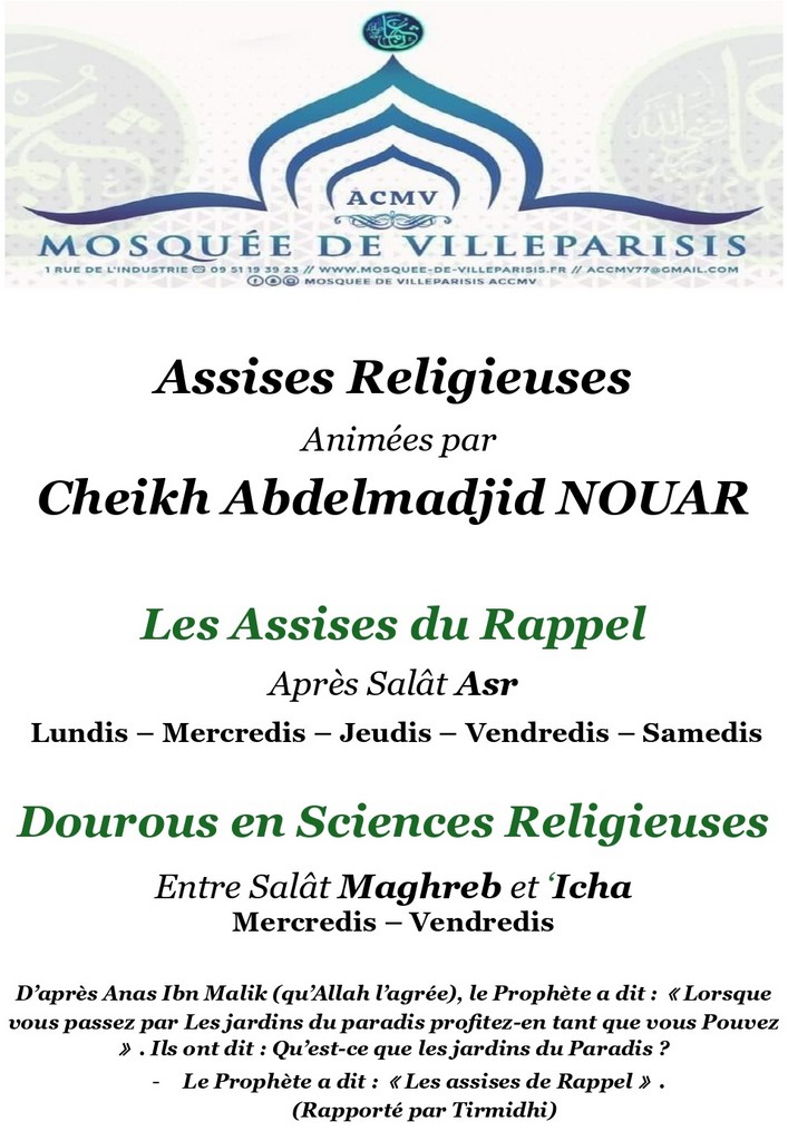 le Vendredi 16 Février 2024 (Joumou'aa) à la Mosquée de Villeparisis.
