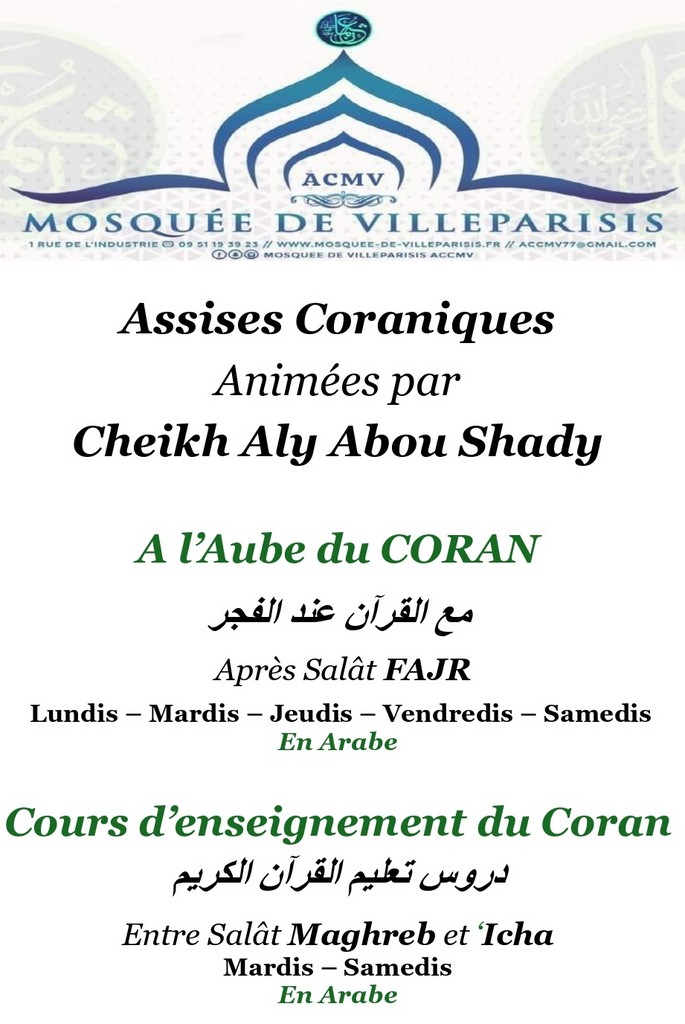 La Mosquée De Villeparisis a le plaisir de reconduire le concours de mémorisation du Saint Coran pendant le mois béni du ramadan.